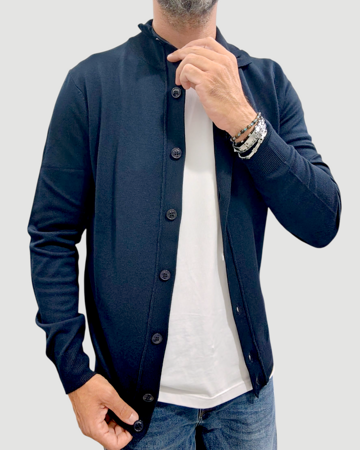 CARDIGAN CON BOTTONI GRIFFAI COLLO KOREANO FINEZZA 12 COL. BLU