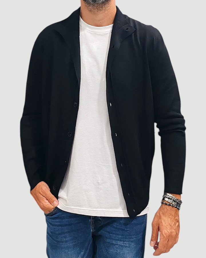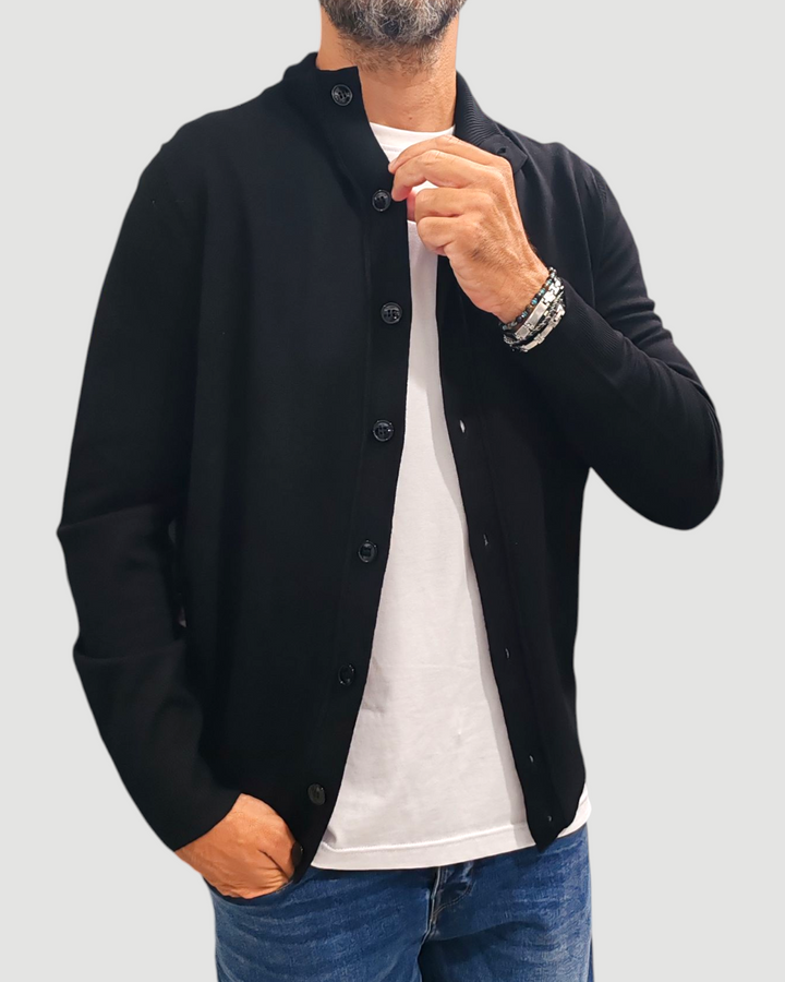 CARDIGAN CON BOTTONI GRIFFAI COLLO KOREANO FINEZZA 12 COL. NERO