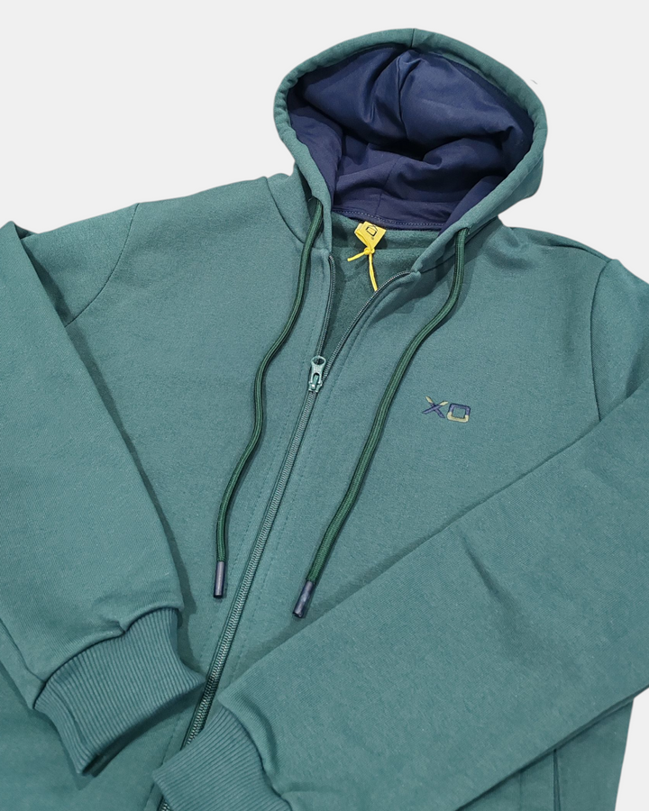 FELPA XO ZIP + CAPPUCCIO COL.VERDE