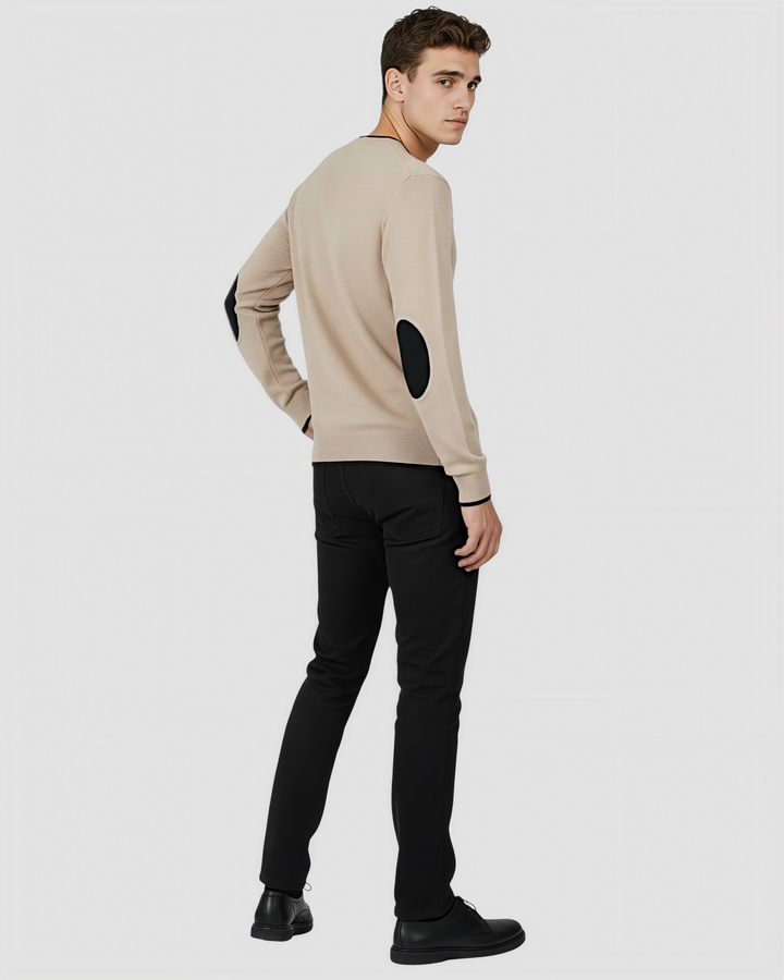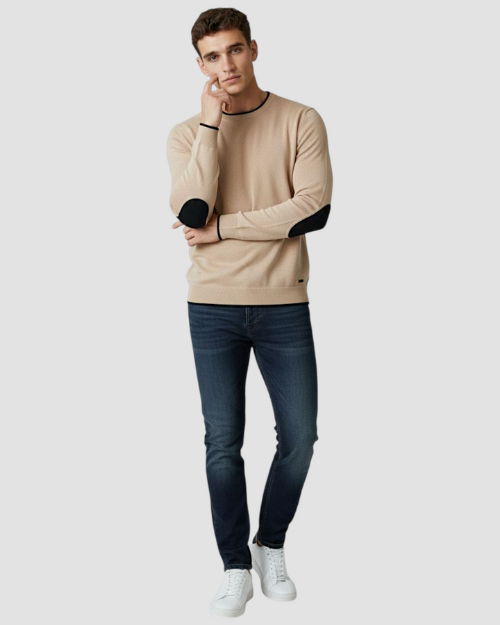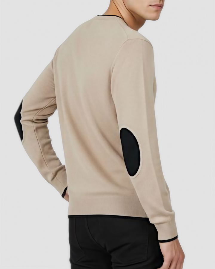 ✅ Maglione in viscosa. Con toppe e perfilo in contrasto nel collo e nei polsini