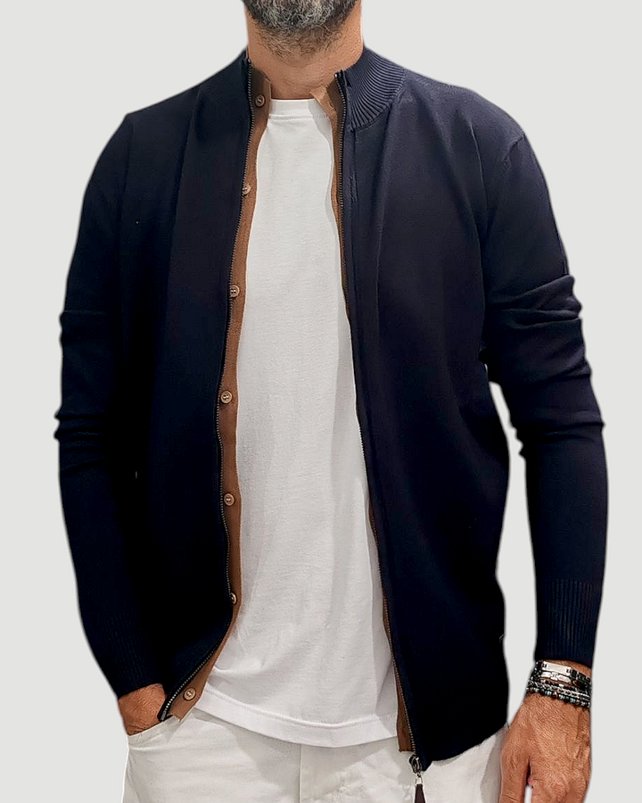 ✅ Maglione full zip con interno mezzo cardigan in contrasto con bottoni