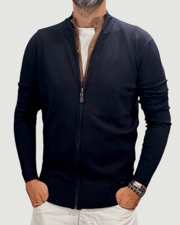 MAGLIONE CARDIGAN LUPETTO ZIP BICOLORE GRIFFAI CON BOTTONI COL. BLU/CAMMELLO
